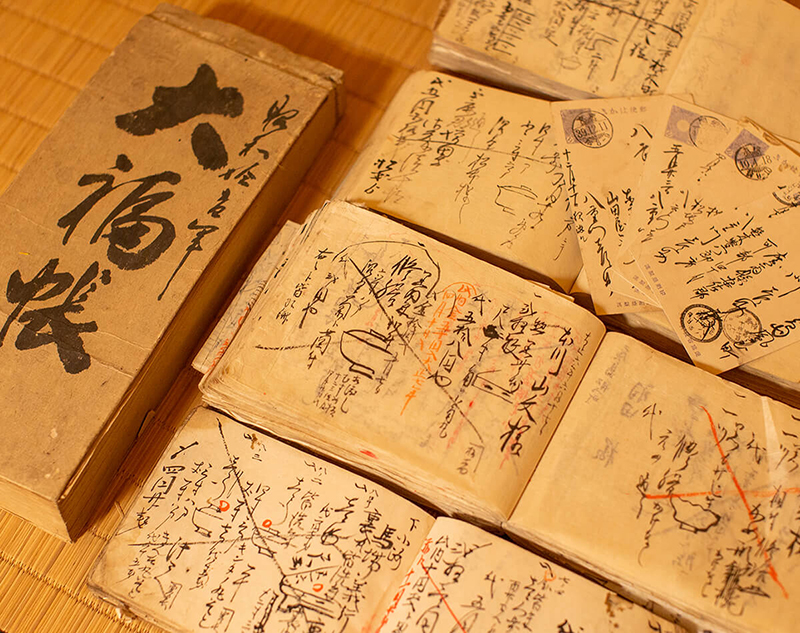 当時の帳簿には、お椀の形のメモ書きも。