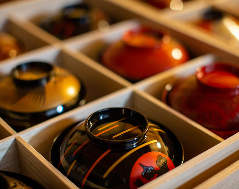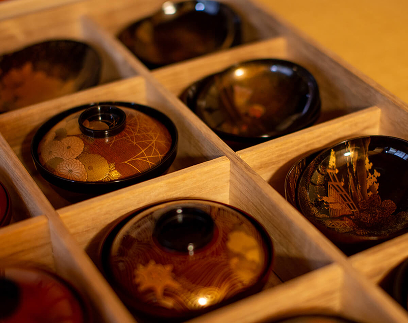 創業時の見本椀は、色褪せない輝きを誇る。