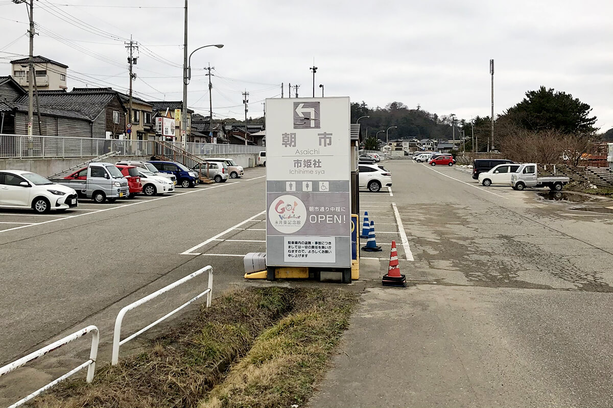 朝市駐車場から徒歩でのアクセス