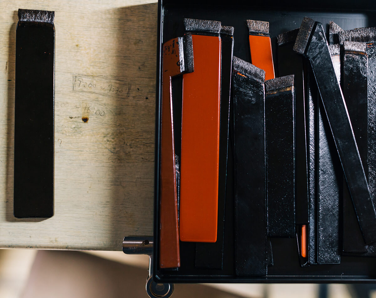 輪島塗の制作は、完全分業制。街全体が工房となり、そこに点在する職人たちが、自分が携わる工程を絞り込むことで、それぞれに技術を研鑽し、品質を高め続けてきました。それらの職人の指揮をとるのが「塗師屋(ぬしや)」と呼ばれるポジション。プロデューサー的な立場で、品質やスケジュールの管理を行います。八重門漆器店も塗師屋の一つであり、長きにわたって多くの職人たちを抱え、歴史に残る名作の数々をうみ出してきました。